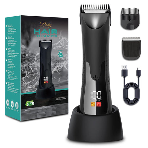Pubic & Body Hair Trimmer for Men, Body Groomer, Electric Groin Hair Trimmer with Ceramic Blade Head, Wet/Dry Shaver with LED Light and Charging Base(Black) -